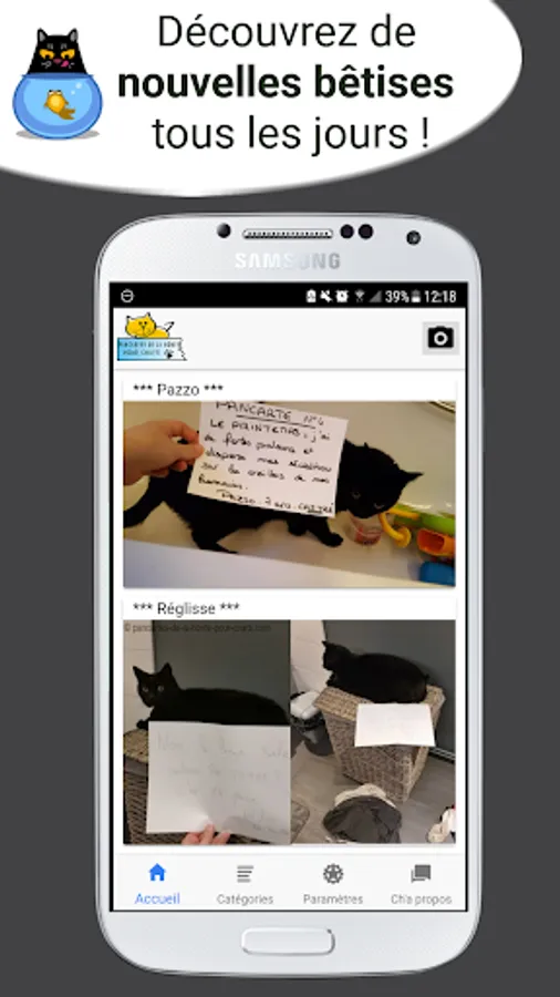 And hop ! It was enough for less than 2 small Frenchies launch this idea in French. The goal is simple: make signs to shame the worst nonsense of your cats and take pictures with.