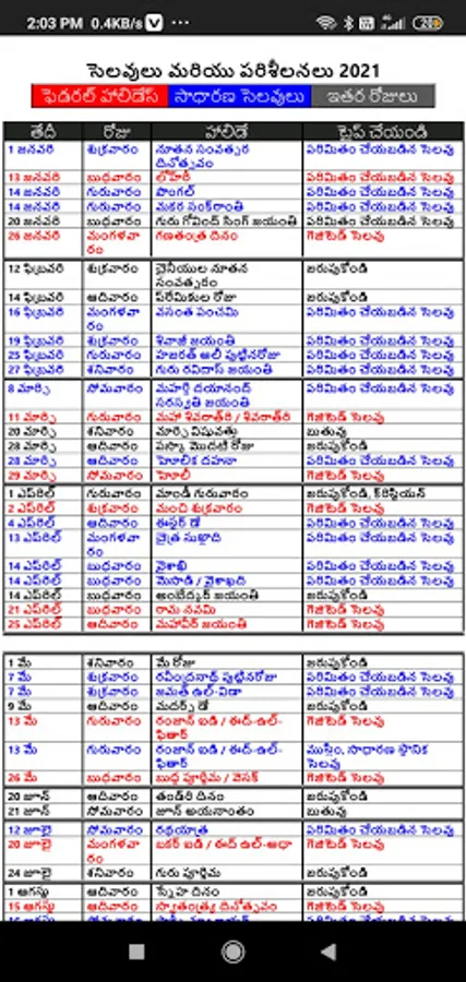 Government Holidays Andhra Pradesh of 2021.