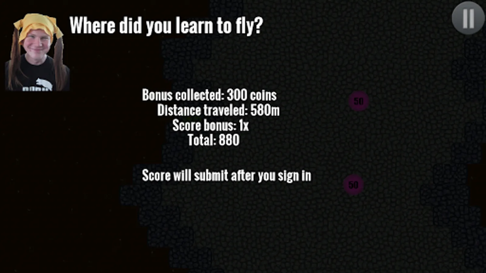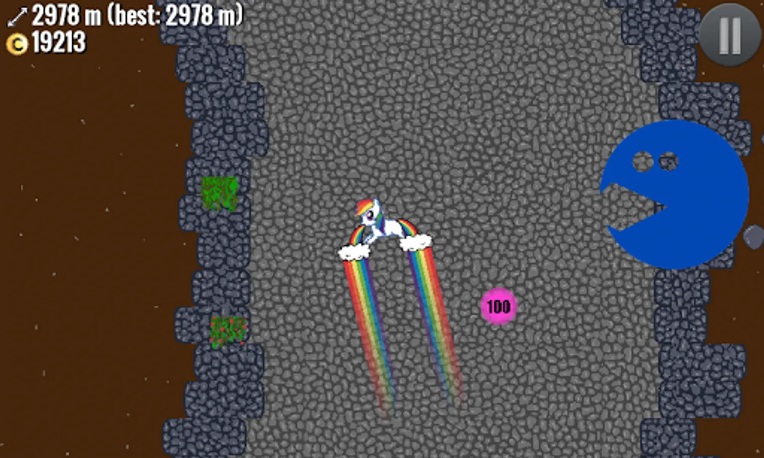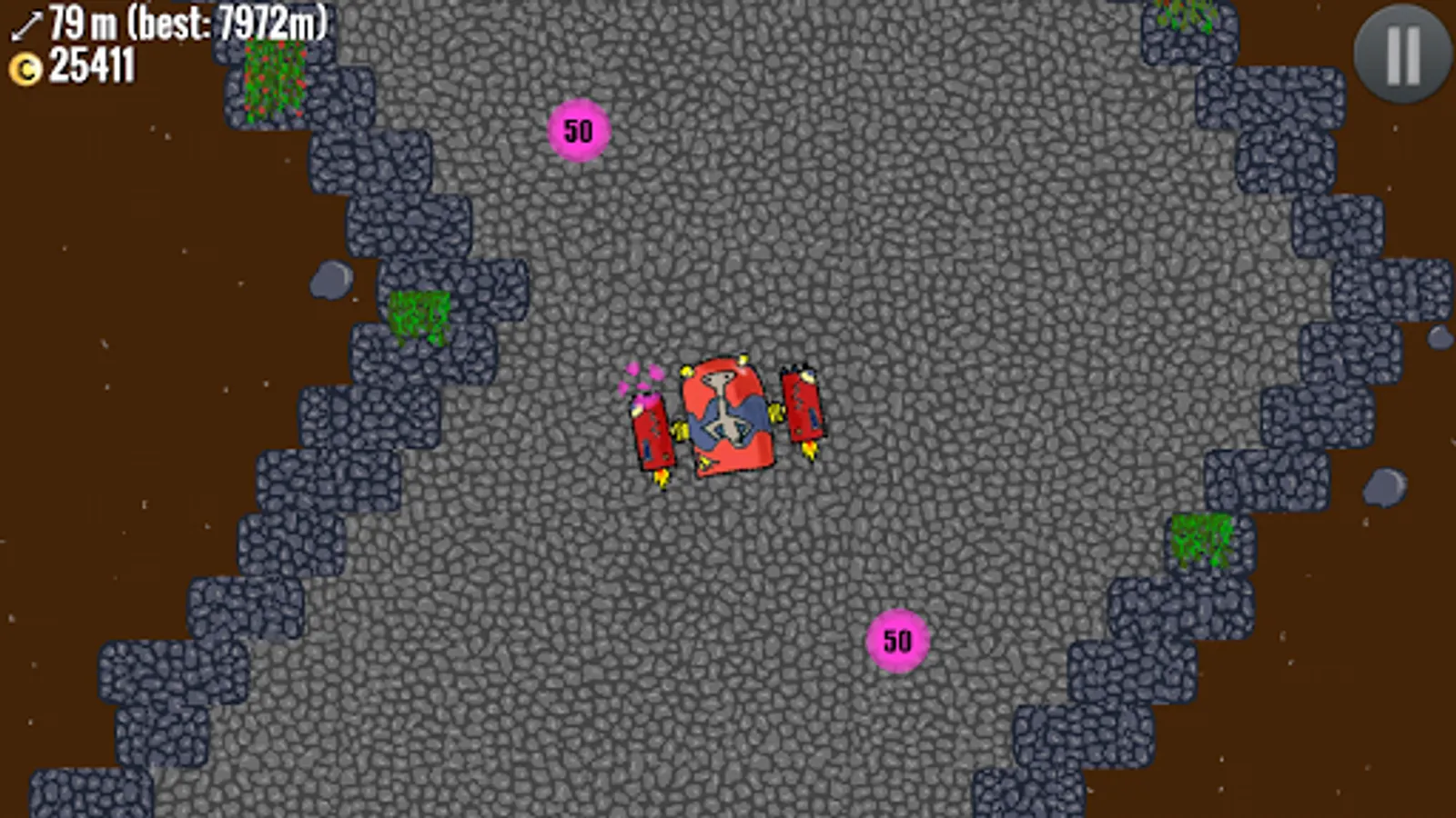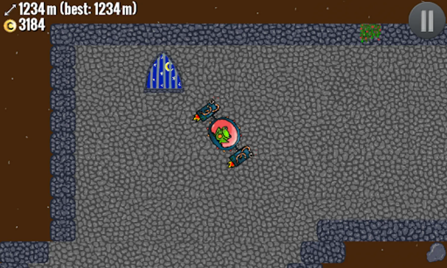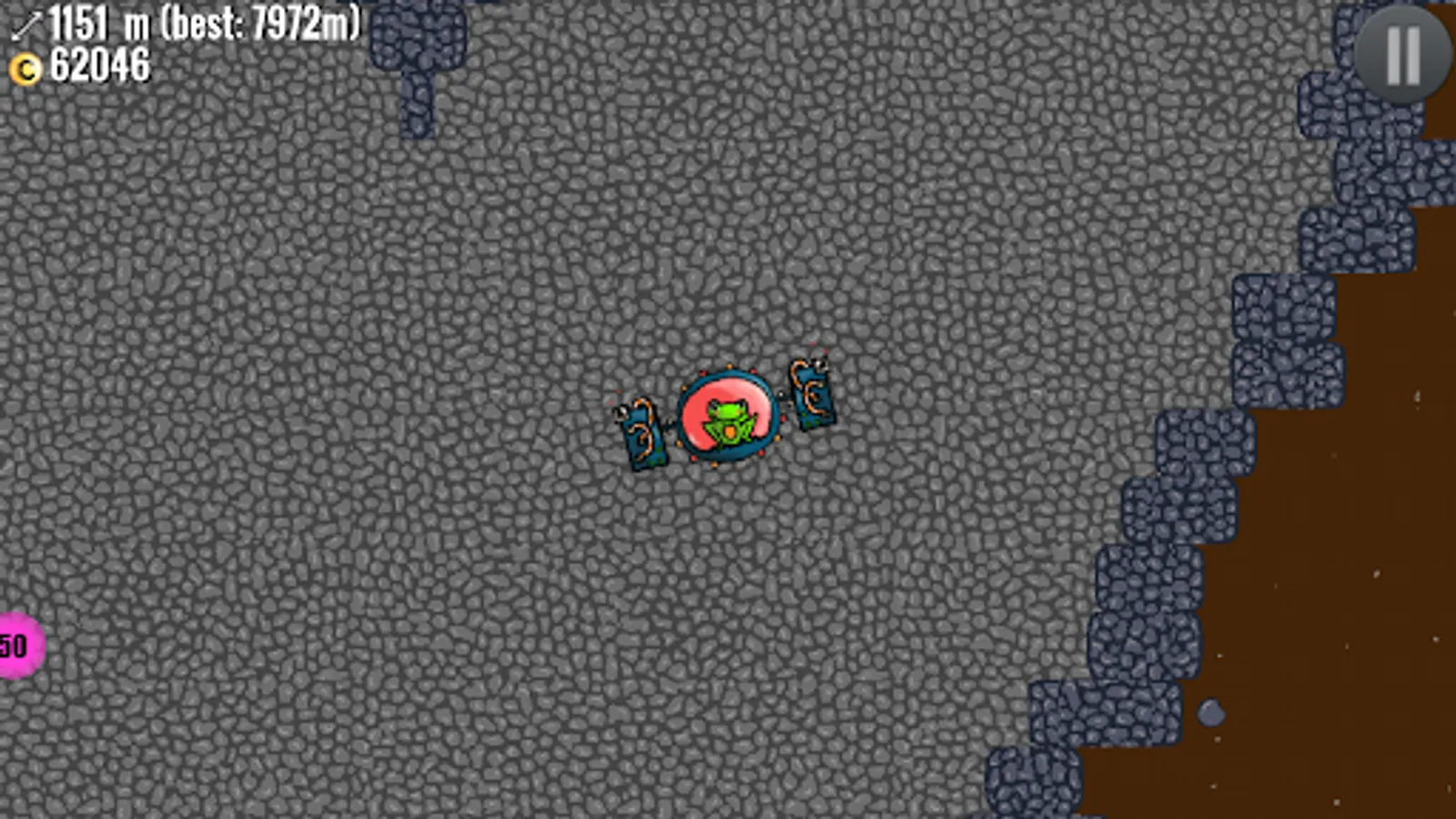 But no worries! Even when you are deep underground, somehow, you get rewarded for every meter you travel plus you’ll find plenty of bonus money on the way. With this currency you can upgrade your flying machine and make it look polished and fast once again. Bored of looking at the same skin all the time? Replace your machine completely for something new. You can travel with Coco Colo Machine, Mr. Frog, Mutated Fish or even Rainbow Pony! It also needs to be mentioned, your machine always has two rotors which are controlled by your fingers. Press on the left part of the screen and left rotor will fire, and guess what? Same logic applies for the right part. Press both and you will fly upwards, otherwise you’ll just rotate. Sounds easy, right? Try it!