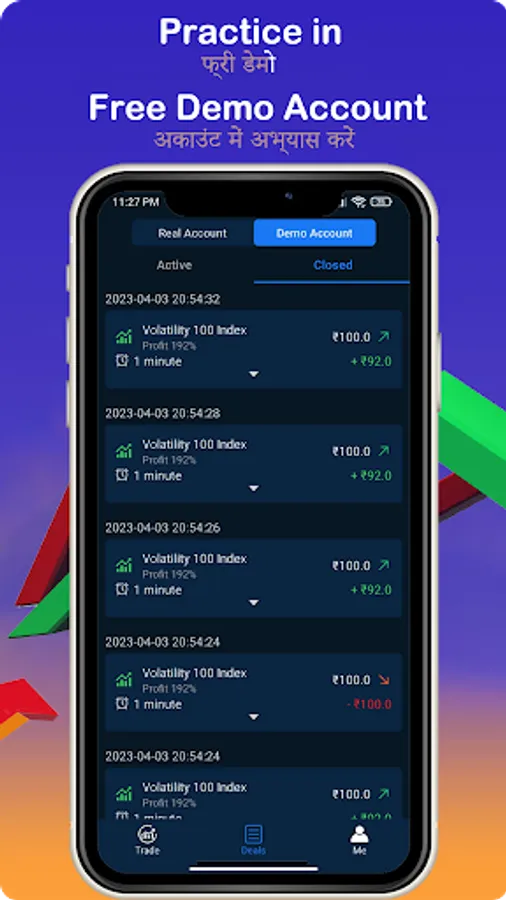 Free ₹10000 demo account for you to practice.You can switch to a real account, deposit funds into it, and trade whenever you want.Beginner friendly tutorial, which will be very easy for new users to quickly study how to make trades. After studying, you will feel more fun in being involved in it.