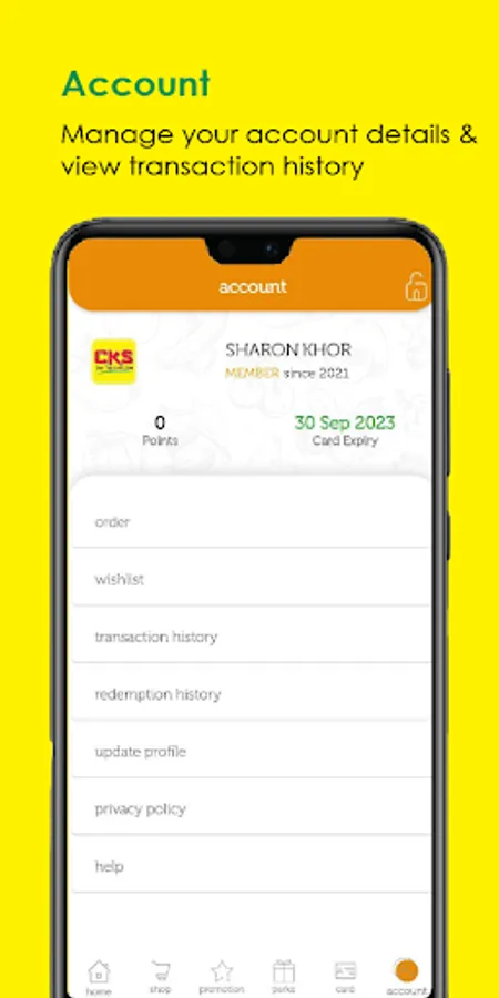You can access to your membership account via CKS App, from checking points balance to redemption. Use our app to order on any days, anytime, anywhere and your groceries will be at your doorstep! (Coming soon)