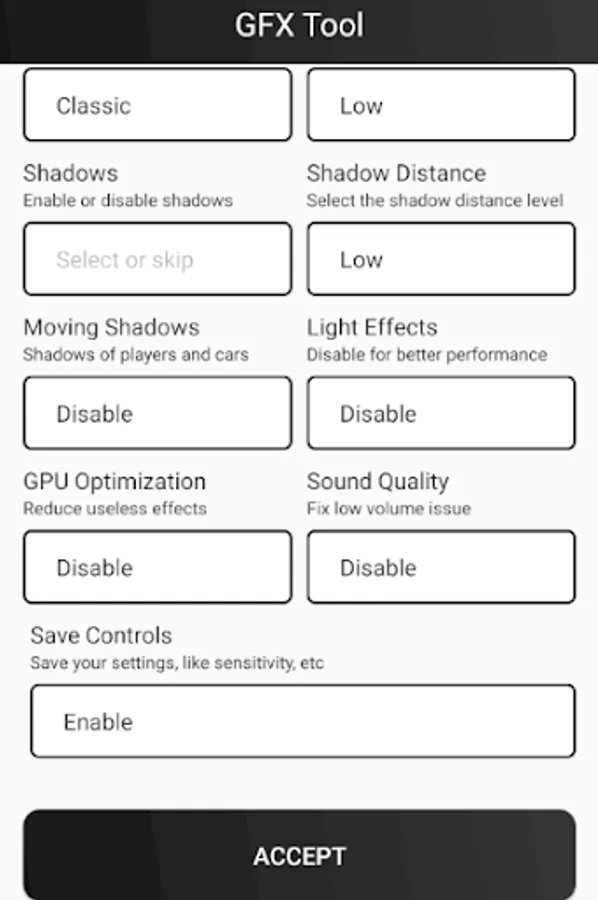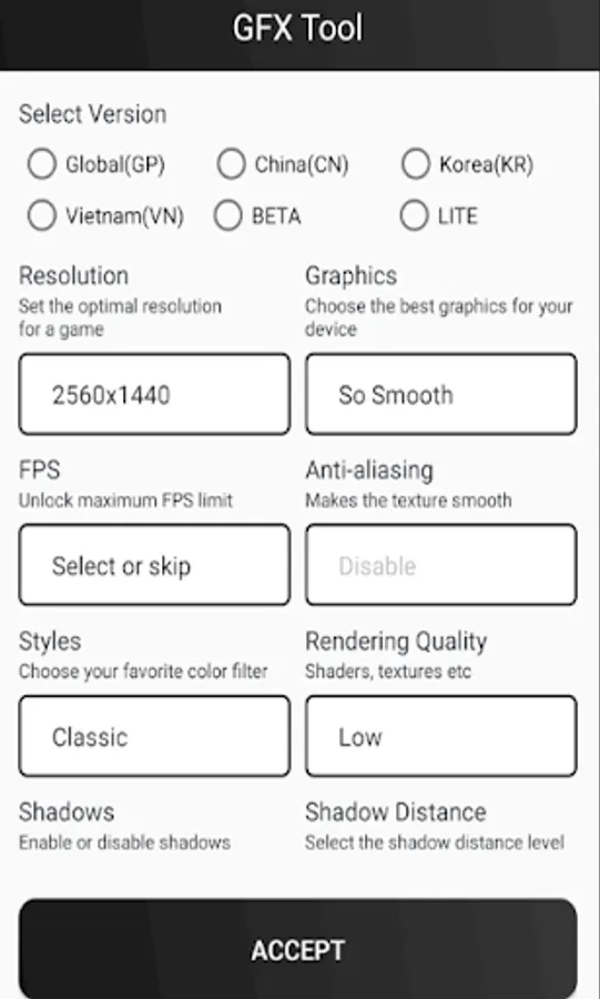 ✅ The GFX Tool app allows its users to use many types of shadow selection. ⭐