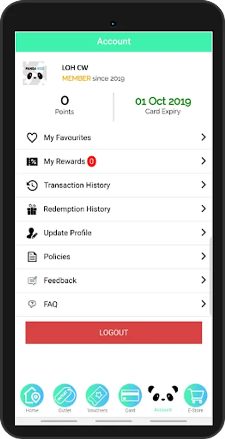 6. Account – Member’s Details, Rewards, Transaction History, Redemption History, Update