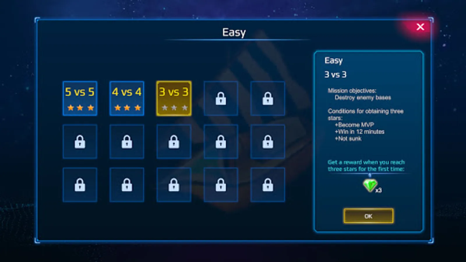 - The game supports 5v5, 3v3, 1v1, and the average time per session is about 10 minutes.