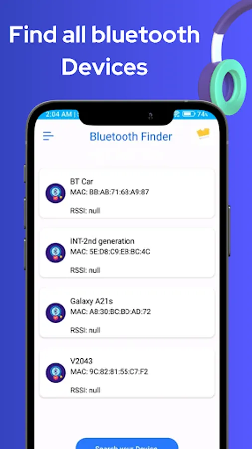 ★ Scan and search : with this option you can search for headphones, airpods ,Earbuds ,wearable , Sport Watches,bands and any kind of bluetooth device that uses bluetooth to communicate.
