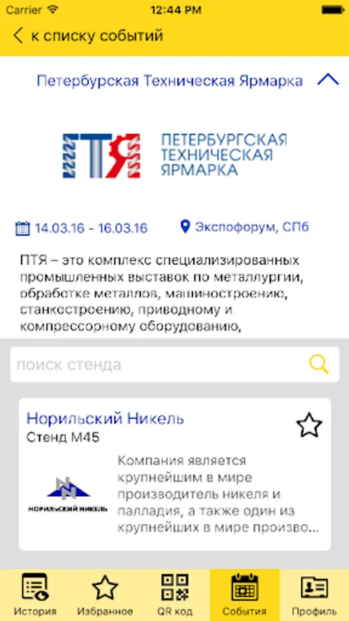The application contains information about all the stands, companies, products and services, which are on display. You no longer need to collect a lot of promotional materials, to remember all the interesting stands that you saw - everything is in your smartphone.