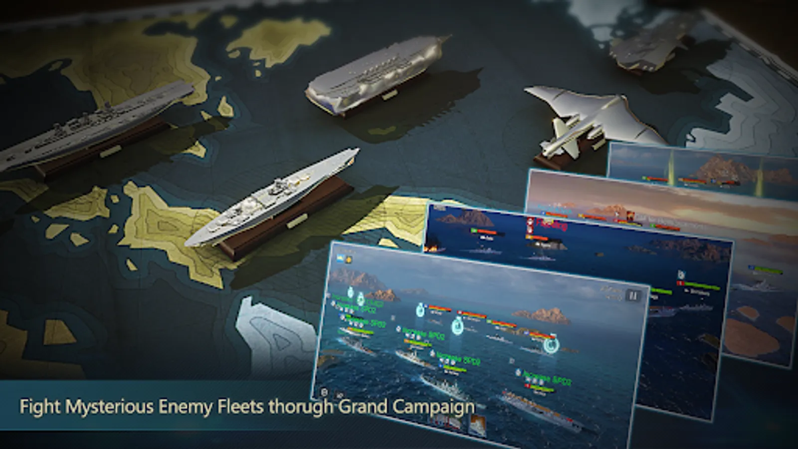 Construct your naval base and build your own fleet! Battle your way through epic Campaign and save the world. Fight with other players with your strategy to see who is the king of the ocean. Challenge the mysterious Super Warships hiding over the world.