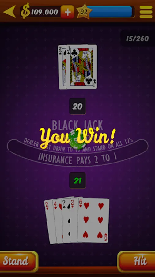 In Blackjack 21 HD winning and loosing goes hand in hand, it is a matter of skill and chance, sometimes you win, sometime you don't.