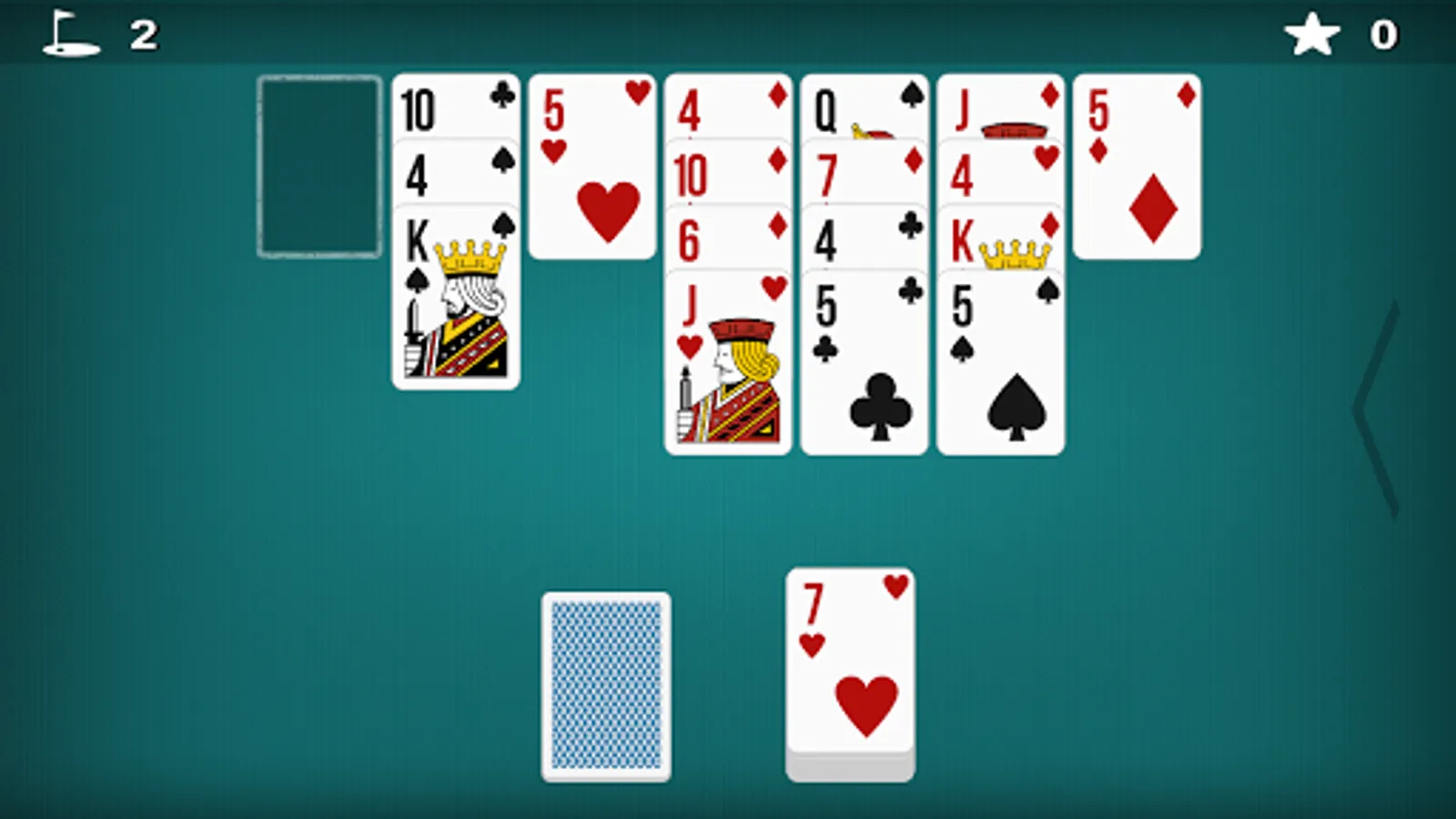 The aim of Golf Solitaire HD is to move all cards from the tableau to the Waste. In the normal version of the game you need to complete 9 holes, that means that you need to clear 9 tableaus in total. However you can also choose to play the shorter version, in which you only need to complete 4 holes.