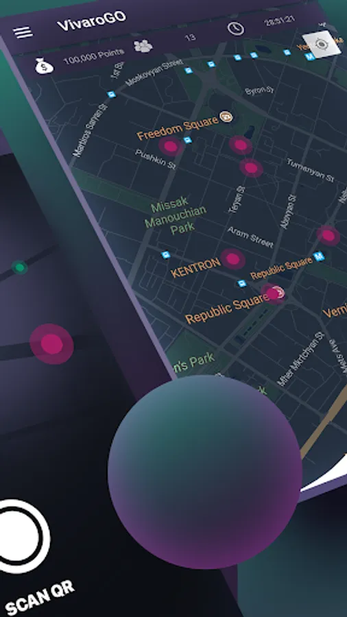 Vivaro Go is a free-to-play, location-based game developed by BetConstruct. The game was the result of a collaboration between PandaVR and BetConstruct. The game utilizes the player's mobile device's GPS ability to locate, capture QR codes, which are appear on the screens of Betshop monitors. Use your smartphone's camera to scan QR codes and open chests to find your prizes. You should use keys to open chests. Keys can be found at the right bottom side of your screen and the app will give you 2 free keys daily.