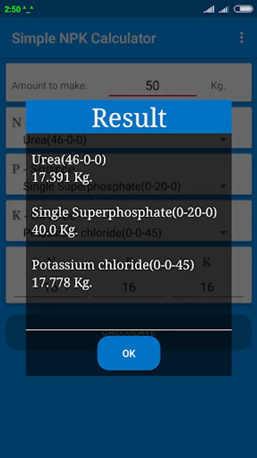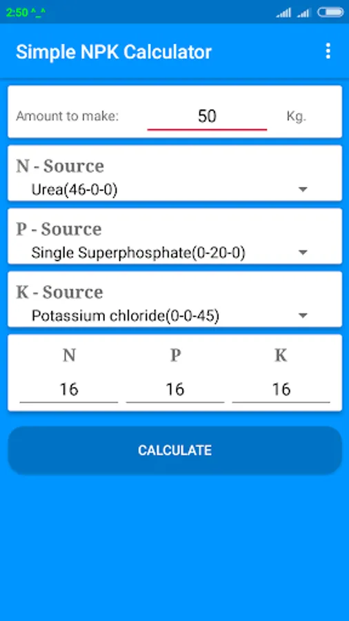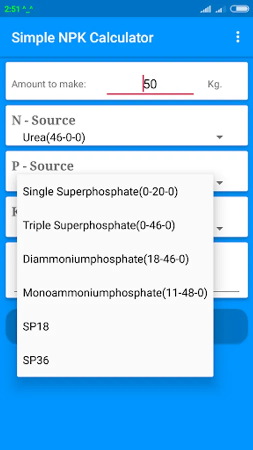 Simple NPK Calculator Screenshots