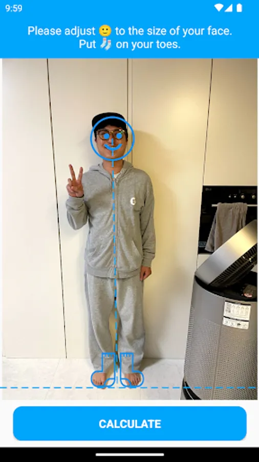1. Please select a photo to calculate your body size.
