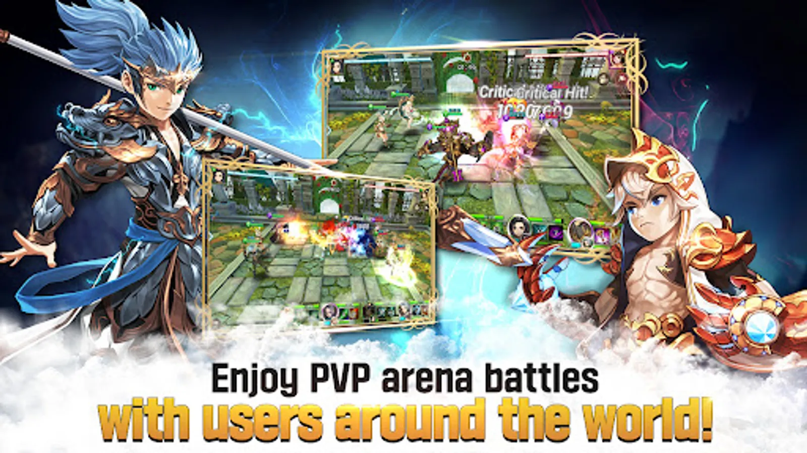 Develop your strategy and tactics to empower your warriors using the system of summoning and collecting heroes of Armes, upgrades, PvE and PvP battles, as well as the synergy system!