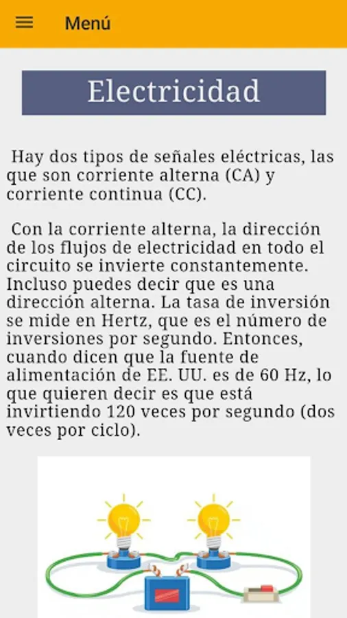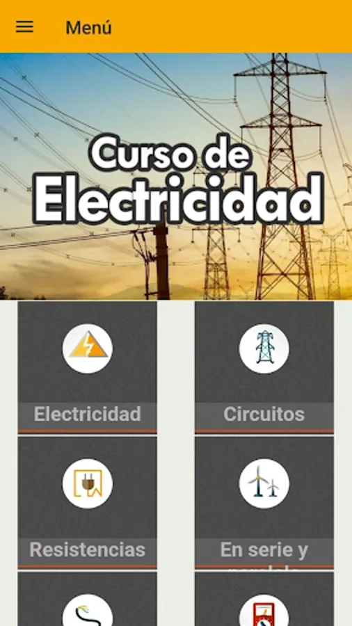 The "Electricity Course" app has a series of theoretical and informative topics that will help you get started in the world of electricity, including: