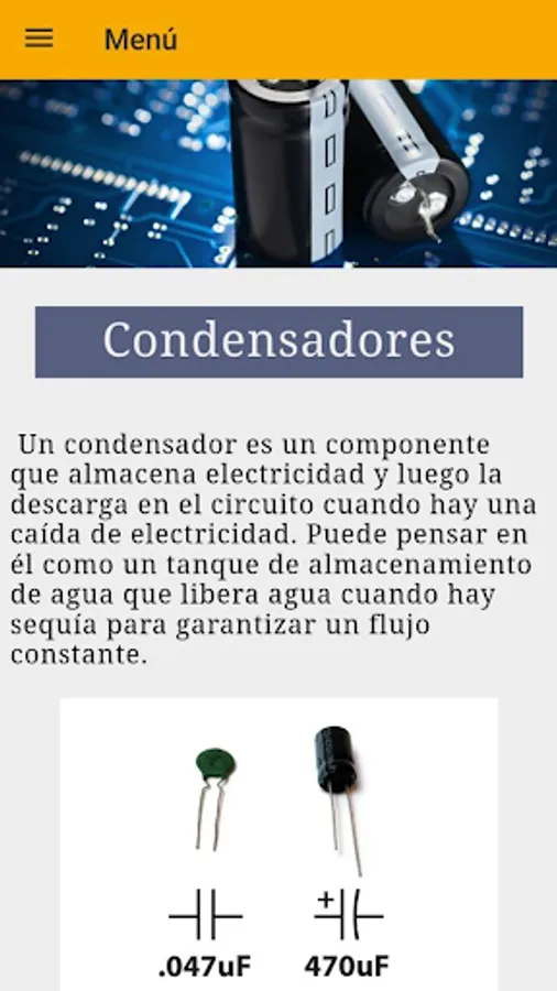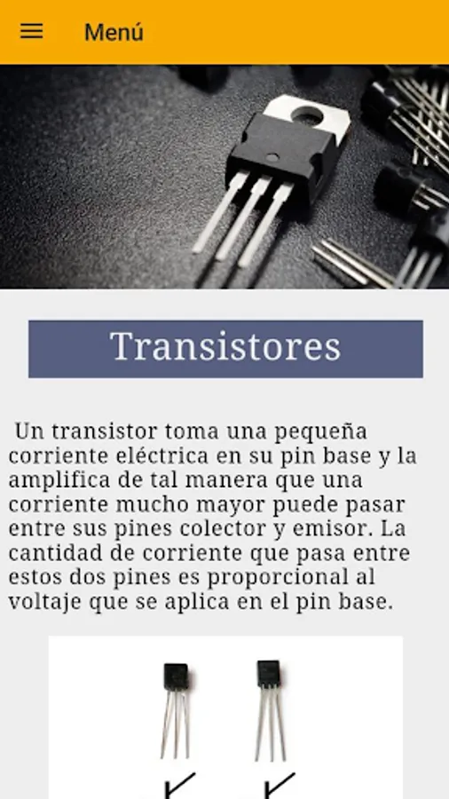Immerse yourself in the world of transistors and circuits with all the content that this app has for you. Learn from the most basic to common components in electronics and electricity.