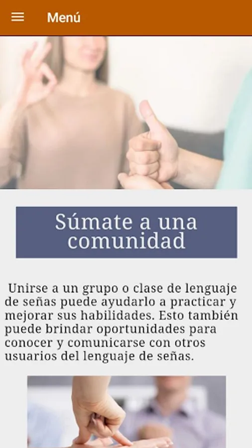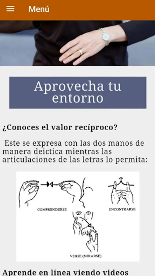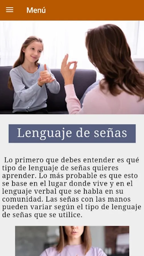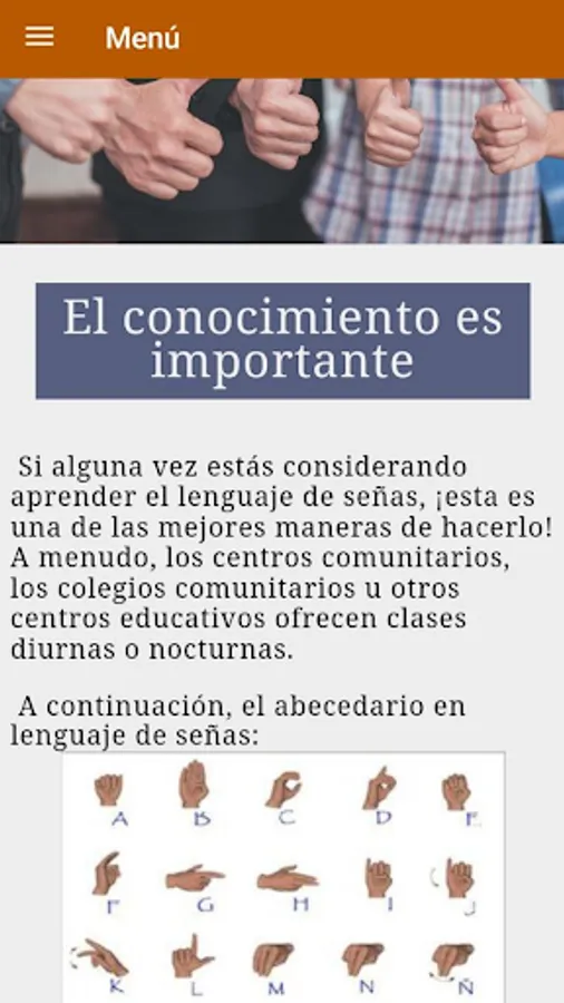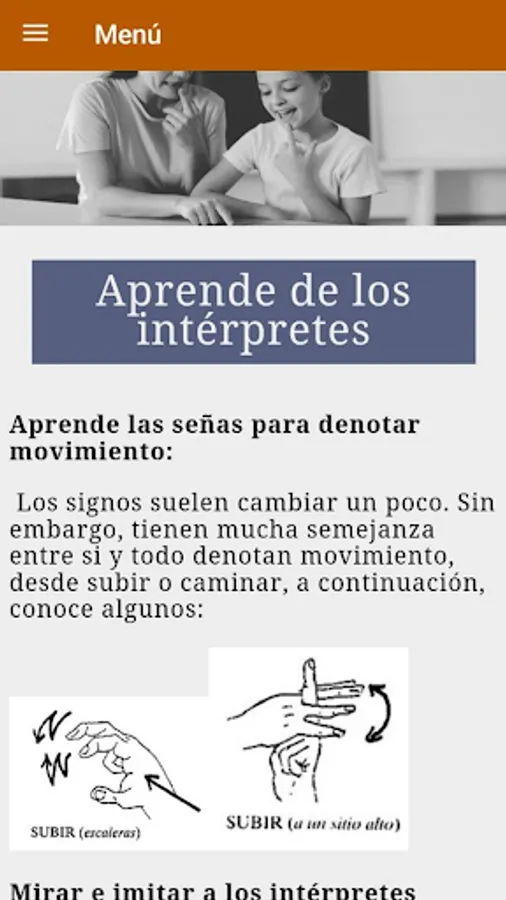 The app "Learn sign language" has material of interest that will facilitate the learning process of this method of communication, including: