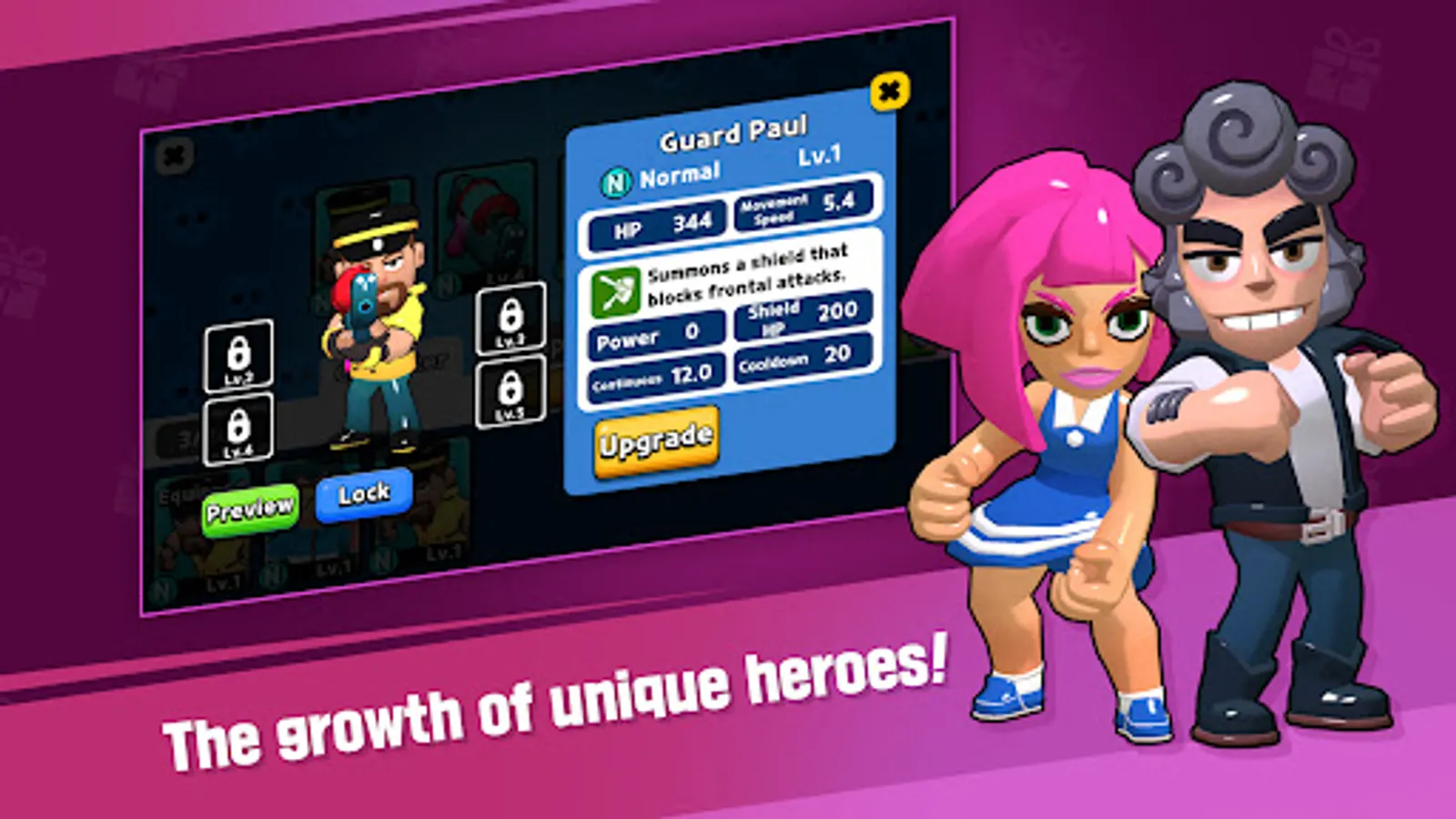 - Meet the heroes with attractive and distinctive appearances and unique skills!