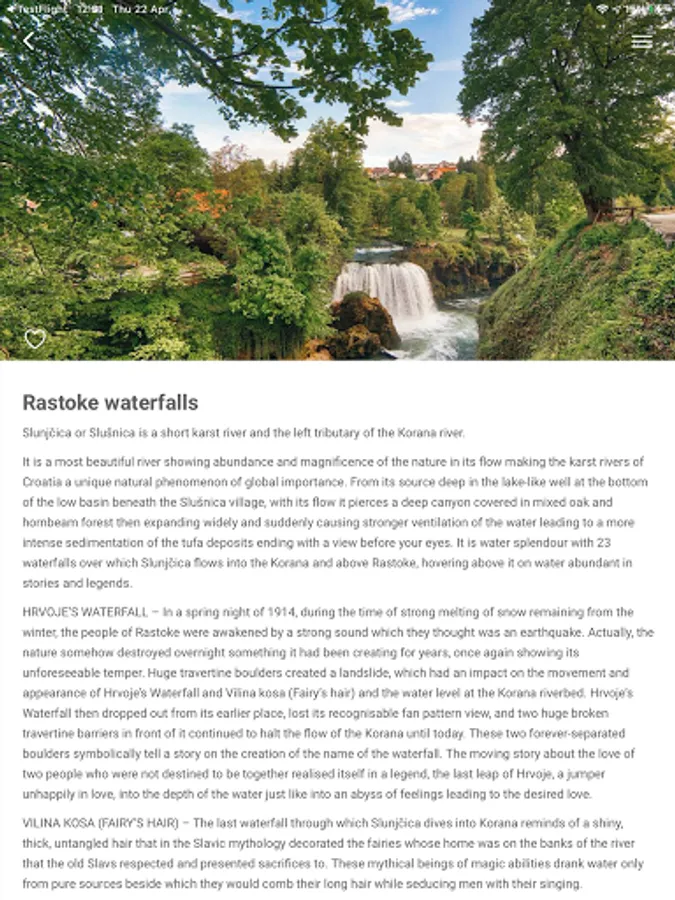 A must-have tool for every visitor to Slunj and Rastoke. Get to know the curiosities. Make it easy to find them and plan your stay in Slunj and its surroundings. In the app you have an overview of hiking trails, bike routes or ideas for an afternoon walk.