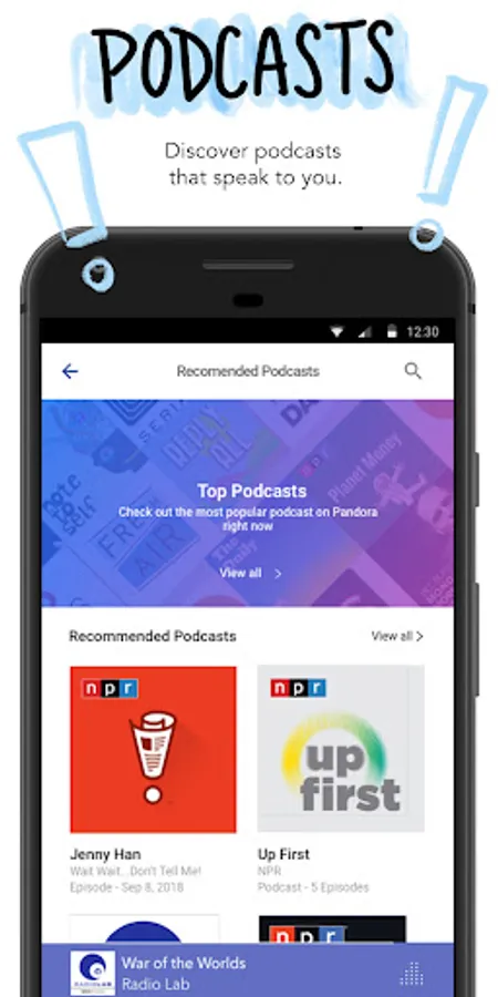 With Podcasts on Pandora, find your favorites and listen to personalized recommendations that actually make sense. Just search on your mobile phone or tablet and play to start listening, then tap + to add to your collection. Find something new by simply browse and tap recommended podcasts to find over 1,400 podcasts, including SiriusXM shows, on-demand whether you're on Pandora Premium, Plus or Radio.