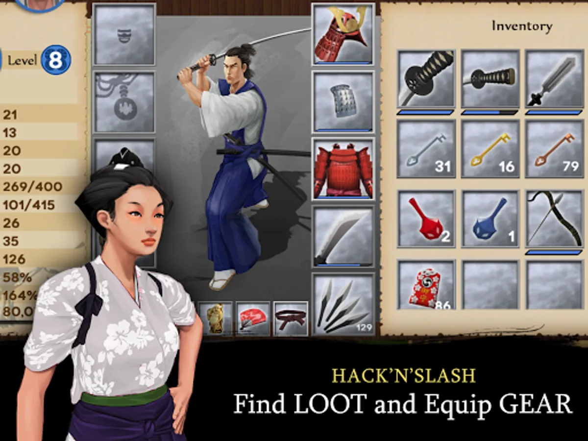 ◉ FIGHT against many types of enemies: ashigaru, samurai, wako, shinobi, ronin, shugyosha, onna bugeisha and much more!