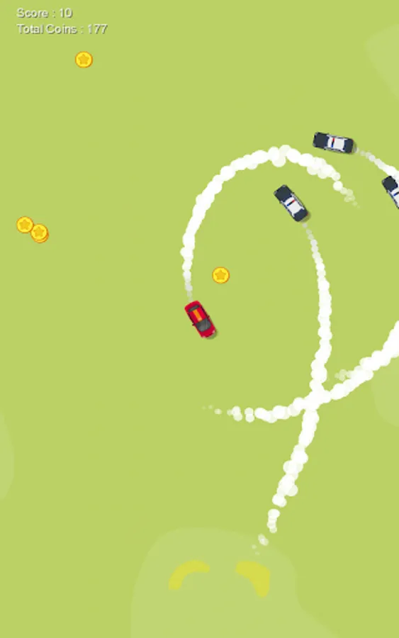 Run!! Police cars are chasing you! Hold your steering strong and evade them away. Make your way through power-ups, speed-ups, bombs, and coins. Level up and speed up your vehicle, do not get busted. Ready to take the challenge?