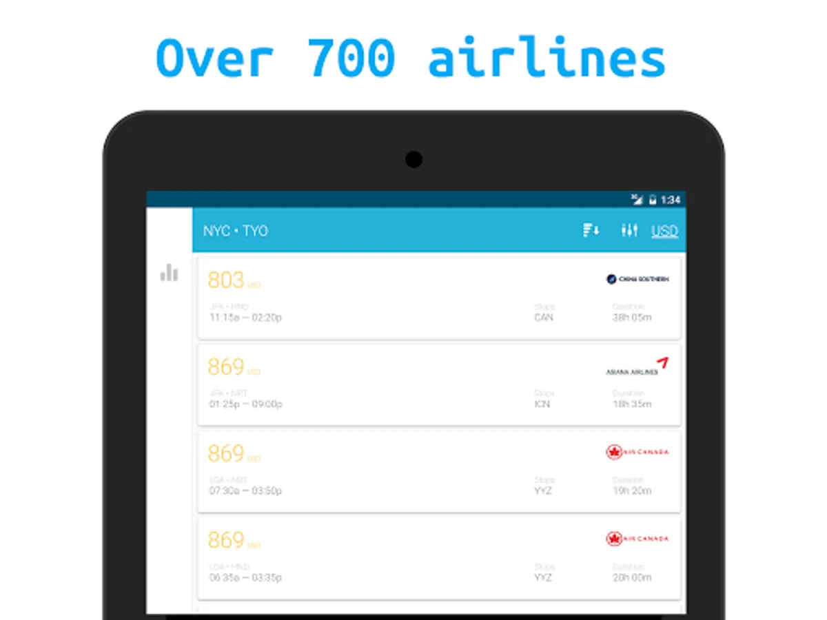 You will can compare air ticket for Turkish Airlines, Air Baltic, Lufthansa, Air France, KLM, Emirates, Qatar Airways, Etihad Airways, S7, Pobeda, UTair and others.