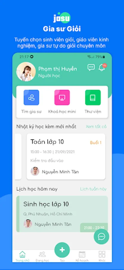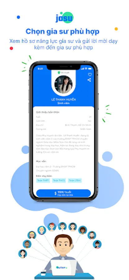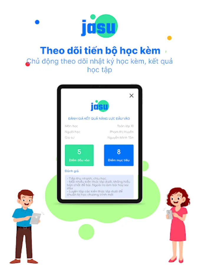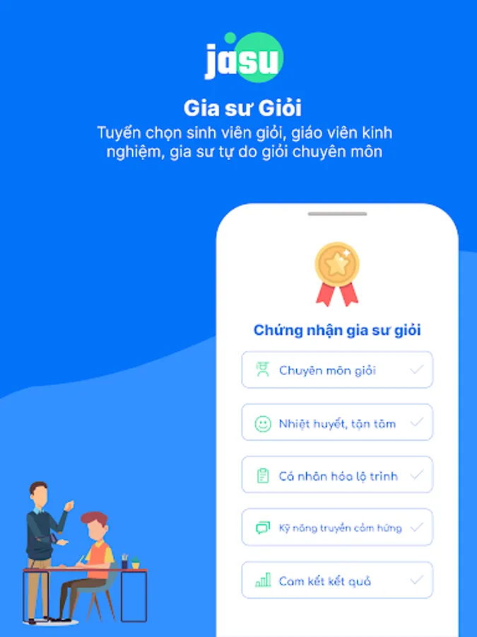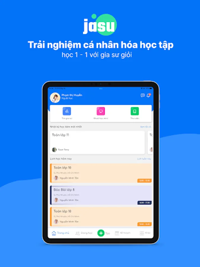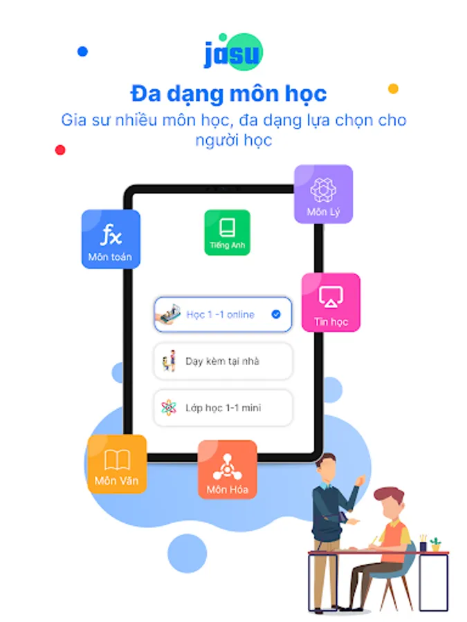Jasu is an application that helps learners and parents find quality tutors for 1-on-1 study at home or online. You can study by the hour, by course, by topic according to your needs.
