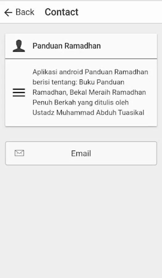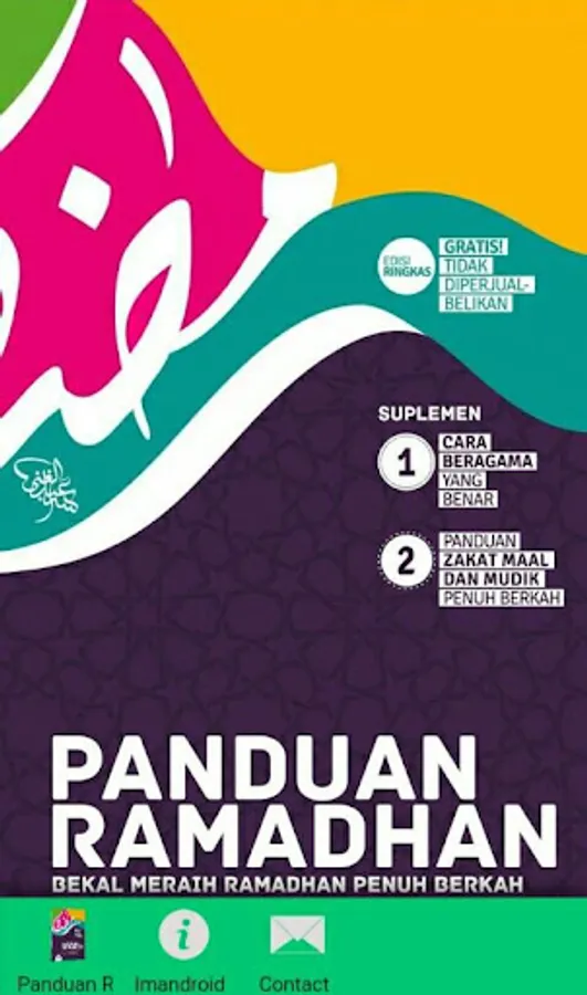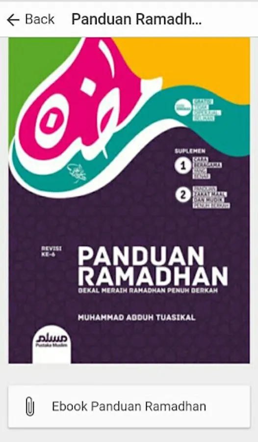 Android app contains Ramadan Guide: Handbook of Ramadan, Ramadan Blessing Achieved Bekal written by Ustadz Muhammad Abduh Tuasikal