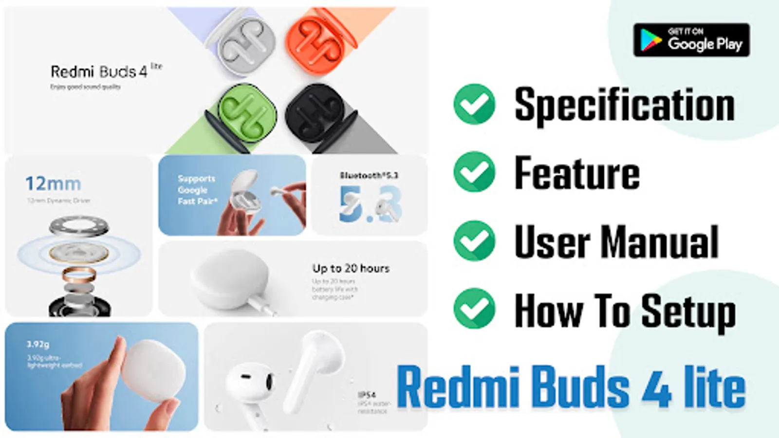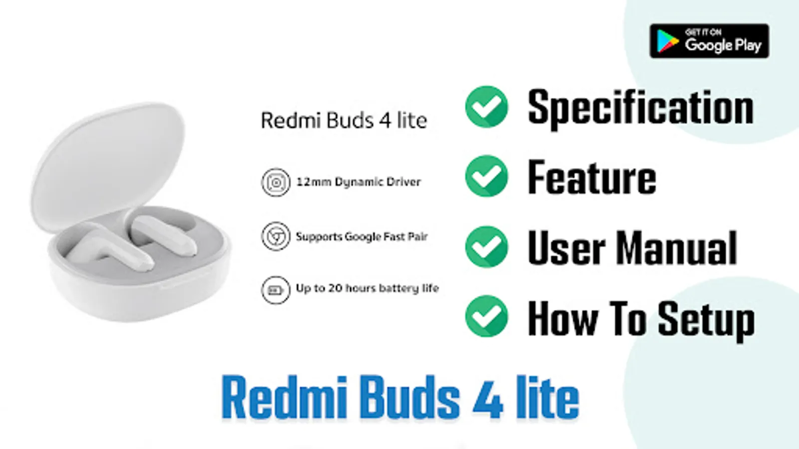Welcome to Redmi Buds 4 lite App Hint. With this app you can find information about Redmi Buds 4 lite. You will learn how to setup, how to know feature and specification of Redmi Buds 4 lite.