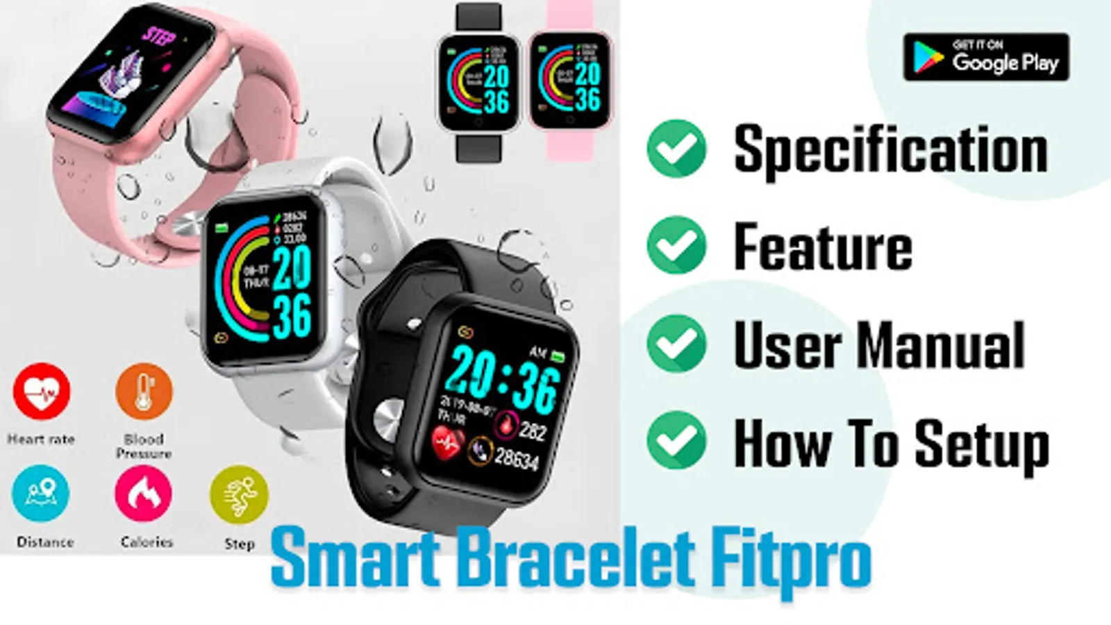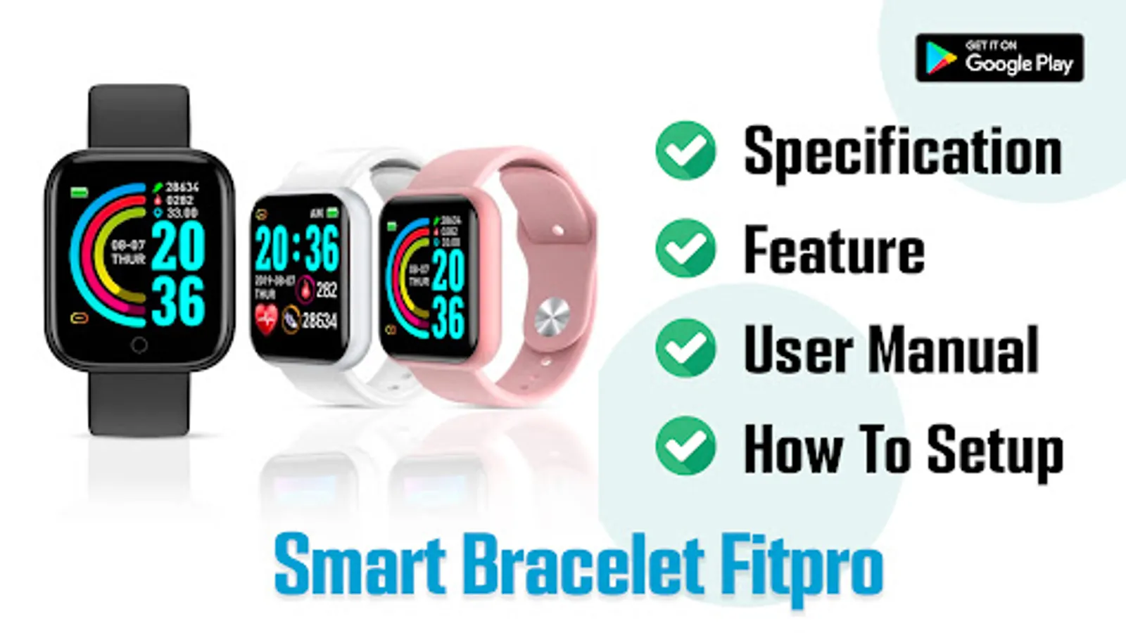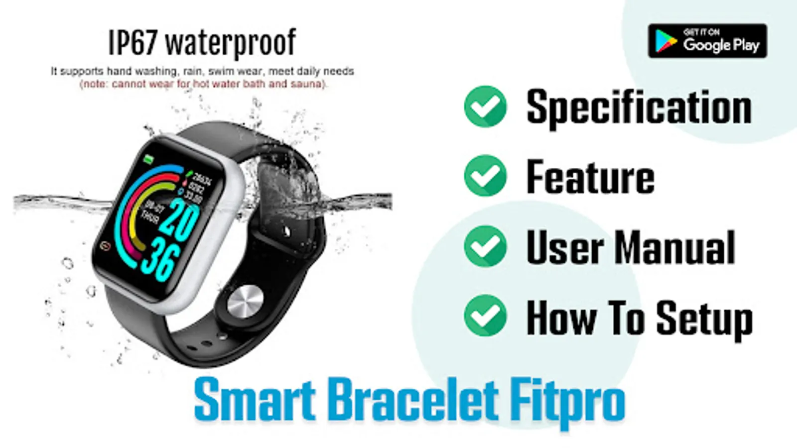 Welcome to Smart Bracelet Fitpro App Hint. With this app you can find information about Smart Bracelet Fitpro. You will learn how to setup, how to know feature and specification of Smart Bracelet Fitpro.