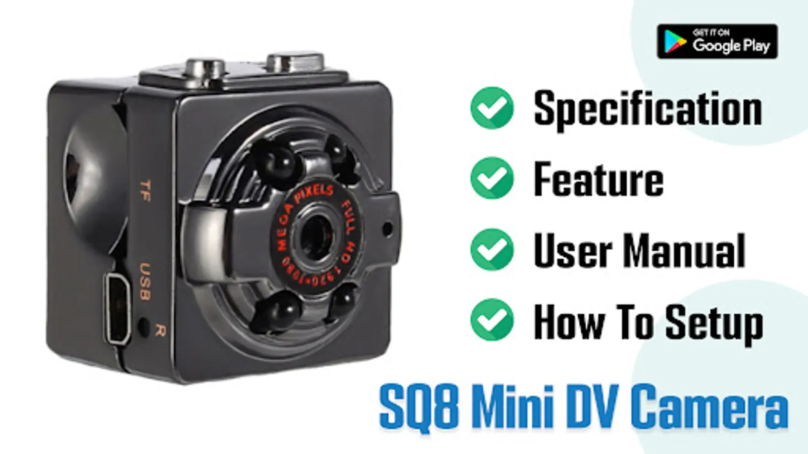 Welcome to SQ8 Mini DV Camera App Advice. With this app you can find information about SQ8 Mini DV Camera. You will learn how to setup, how to know feature and specification of SQ8 Mini DV Camera.