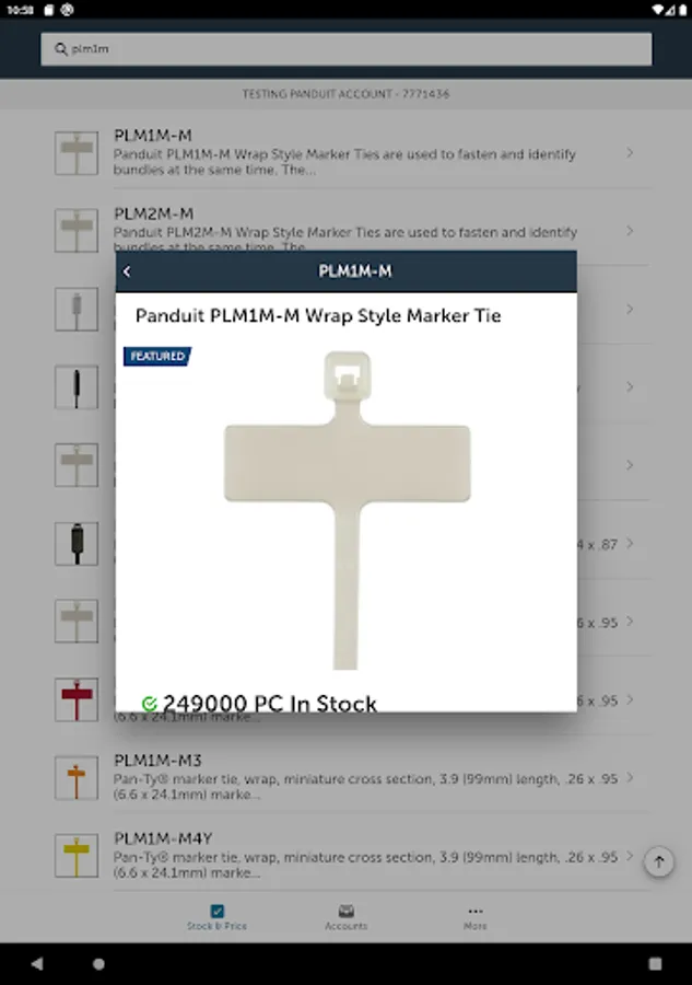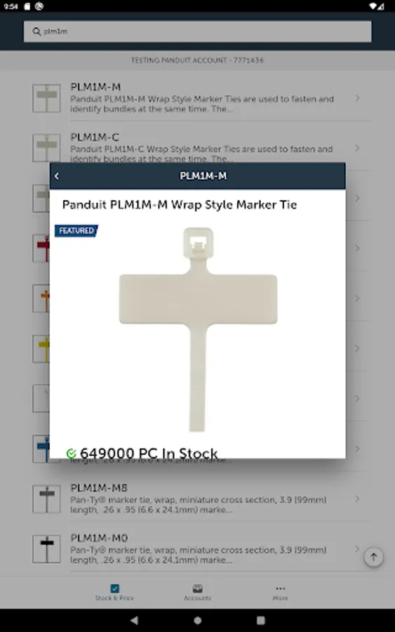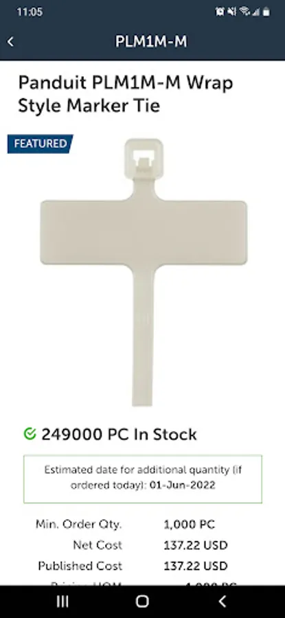 The Panduit Check-It mobile app provides customers with instant access to product availability. Users can search for any Panduit product by part number to retrieve product availability details.
