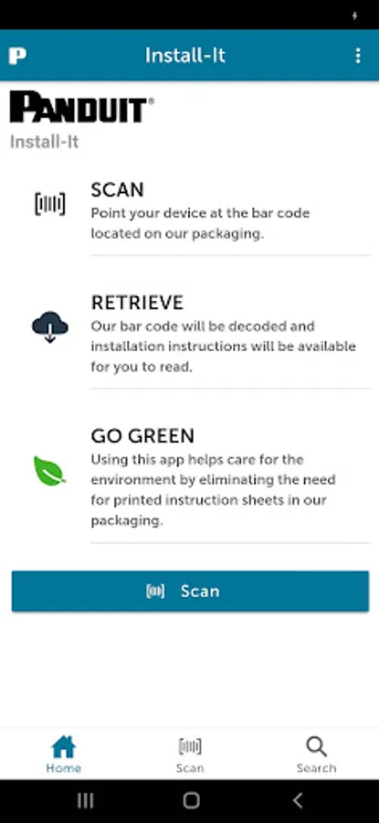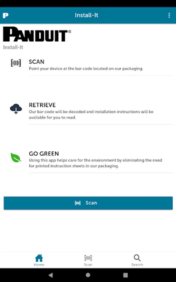 In order to scan a Panduit product barcode, your device must have a built-in camera with autofocus capabilities. When scanning Panduit barcodes or searching for Panduit products by part number, you will need Internet connectivity. To scan product barcodes, your device must have autofocus.