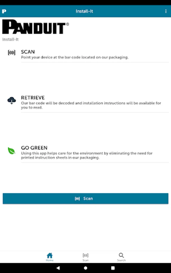 Panduit Install-It provides installers of our products with instant access to part information, installation sheets and specification sheets. Installers can either scan the barcode on our product packaging or search for a product by part number to retrieve official Panduit part information and related documents.