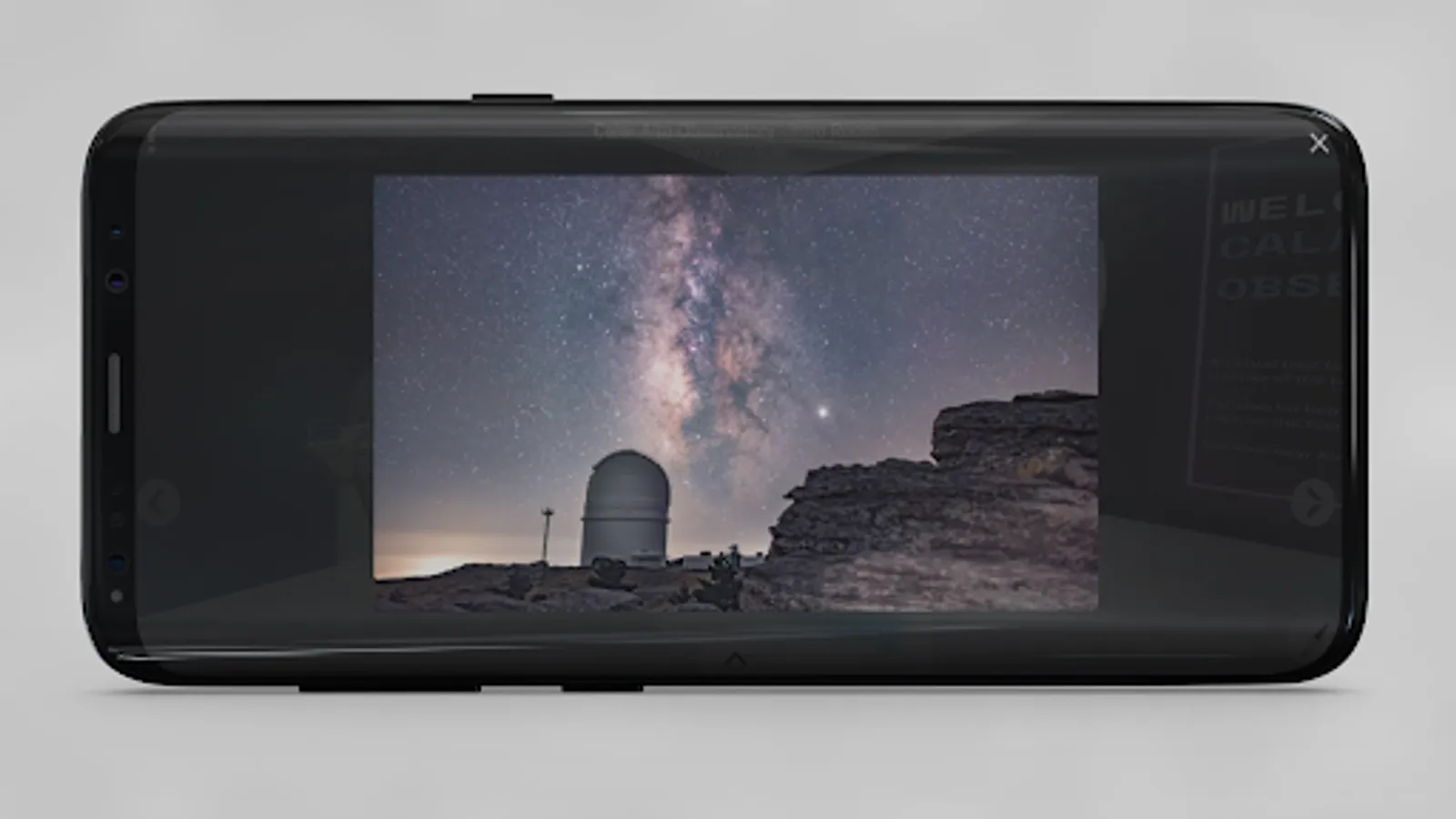 This app also works on your phone or tablet without a VR headset. Your device itself becomes a magic screen into the 360° Virtual Reality experience as you move it around to see the scenes. You will also be able to click on the icons to listen to interesting facts or to move on to the next site of Calar Alto you wish to discover.