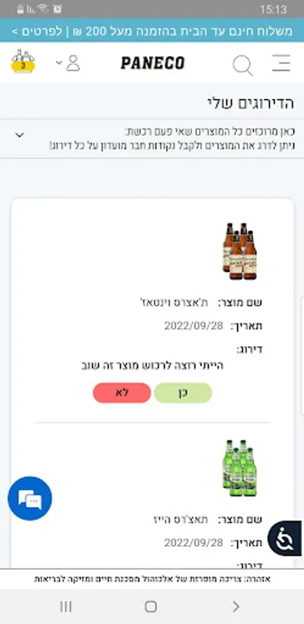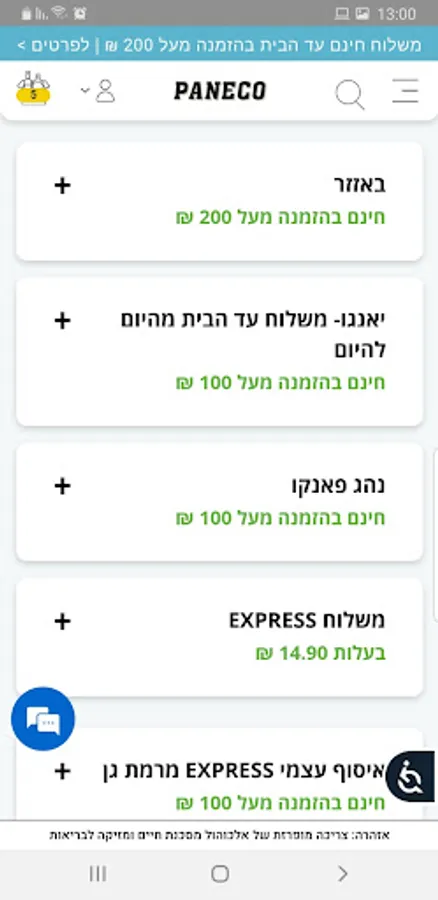 בימי שישי הזמנות עד השעה 15:00 ובערבי חג עד השעה 13:00 יסופקו באותו היום. (בימי שבת לא יינתן שירות המשלוחים והאיסוף עצמי(