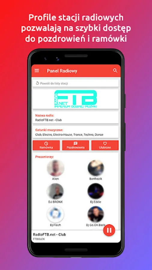 The application allows you to create your own list of favorite stations and a radio search engine can use to search both their names and musical genres.