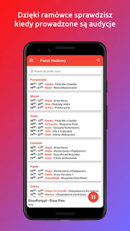 With this application you will be able to listen to the radio, check the hours of programs in the network schedule and send greetings.
