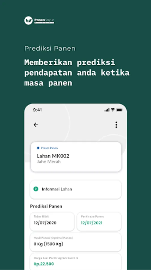 Can display harvest predictions, prediction harvest date, profit forecast and turnover forecast.