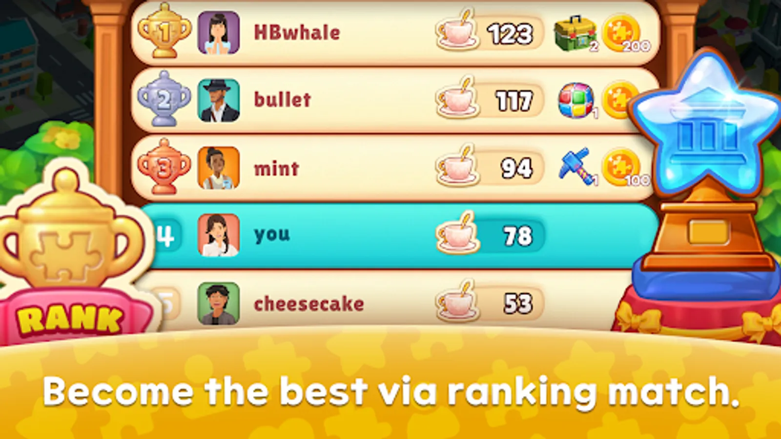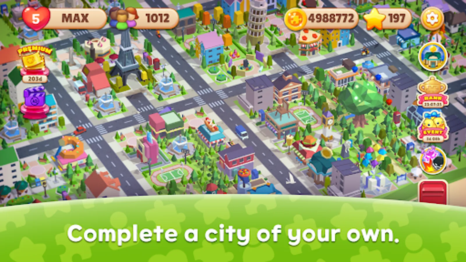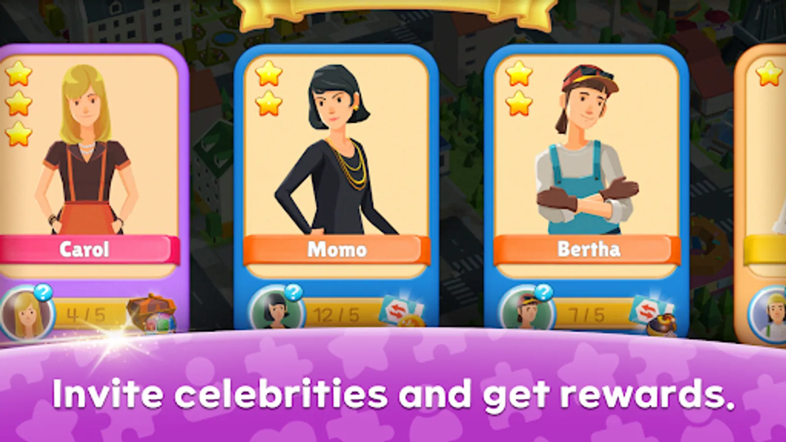 Develop your city and meet celebrities by clearing match 3 puzzles.