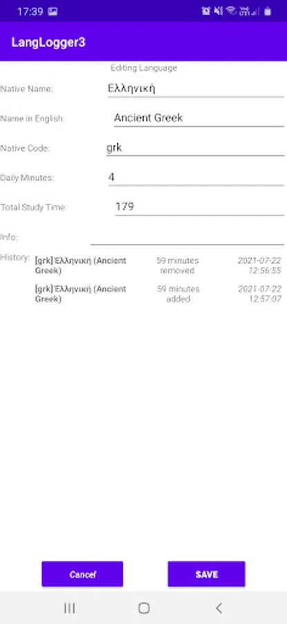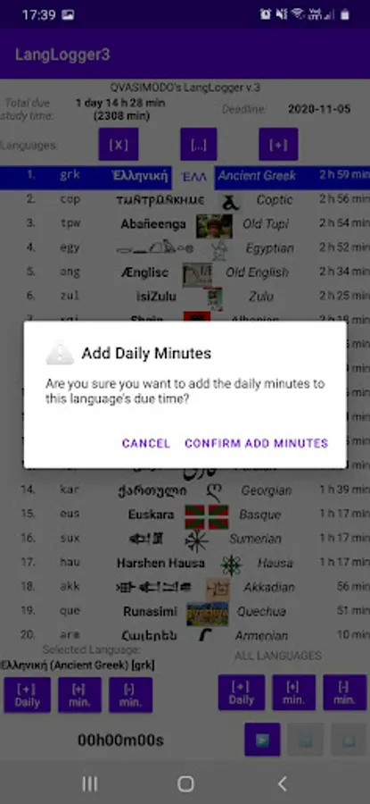 With LangLogger you can keep a record of how much time you spend learning a language. You can also use it to set how much you should study every day, so you can always know if you are reaching your daily target or staying behind schedule.