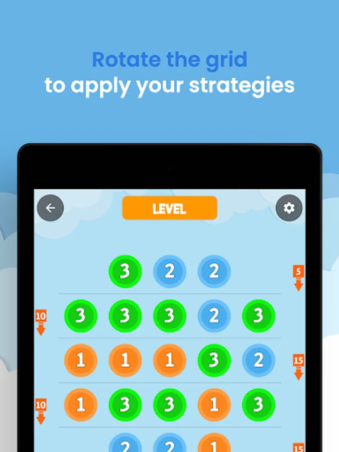 Pangra is a puzzle game that will challenge you. Add up the checkers, rotate them, try to free them from the game grid! You will have to exceed the limit value of each row to allow the checkers to move down until they disappear. Your goal is to remove all checkers within the allotted number of moves, will you make it?