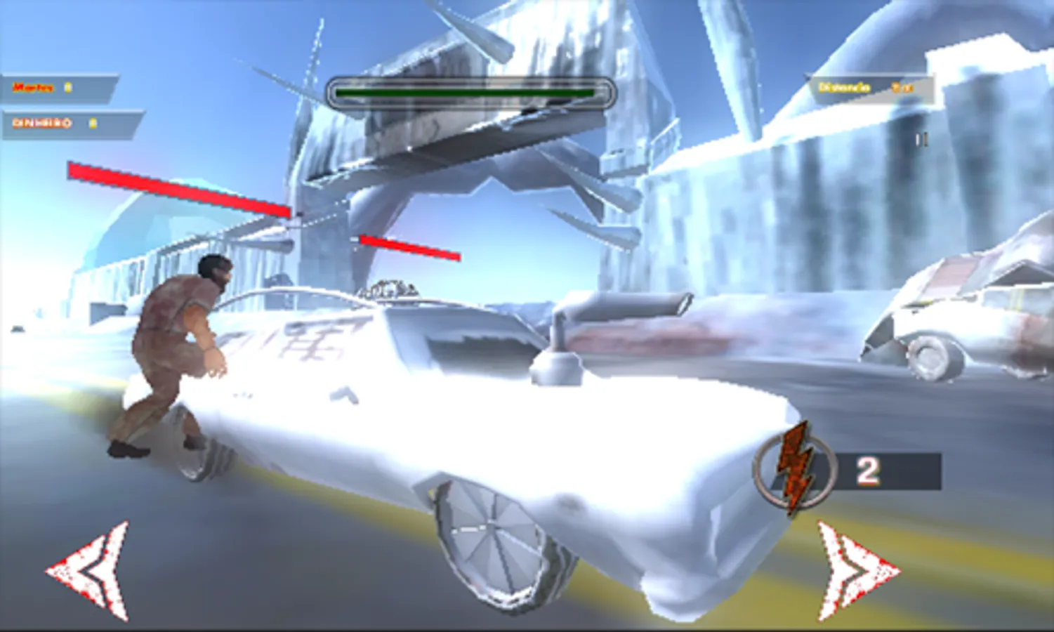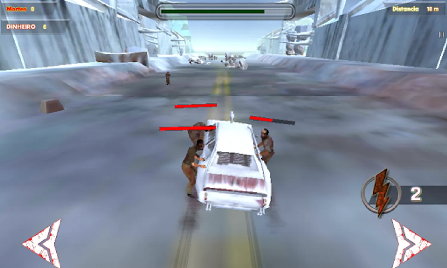 To escape there is only one road, go straight face ,, drop the zumbies your car throwing them against objects and shooting at them. Save your life!
