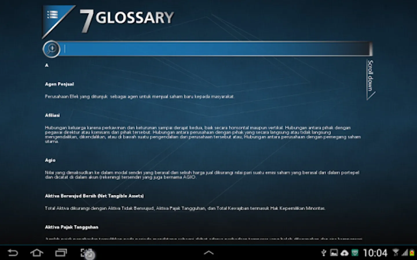 This app also gives a simple explanation about the Syariah Stock Trading in Indonesia.