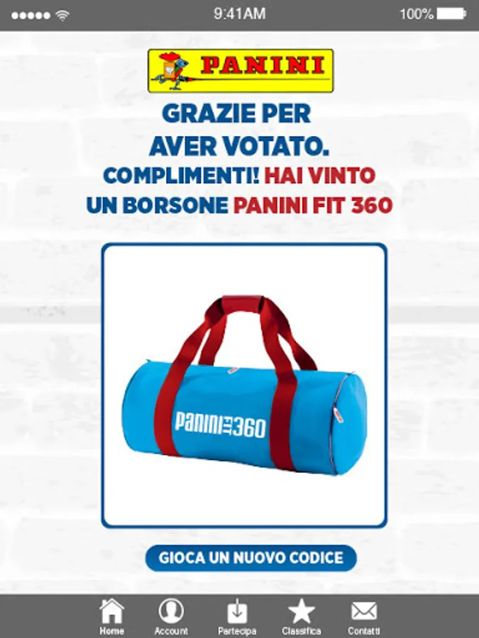 Register with your data, access your profile and discover the fantastic gifts that Panini has thought up for you. With the CalcioRegali app, all the collection of points is in your hands!