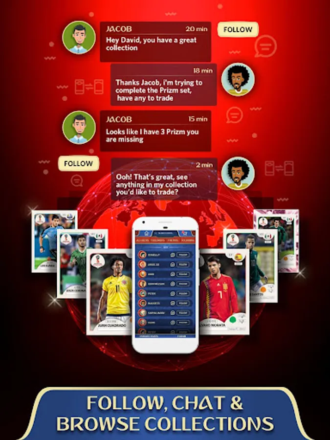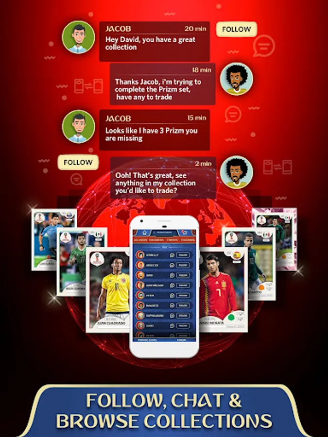 Collect and trade stickers from all the countries and players participating in 2018, plus the last 4+ decades of the World Cup. Find your favorite, moments, players and champions, and complete sets from the most iconic tournaments.
