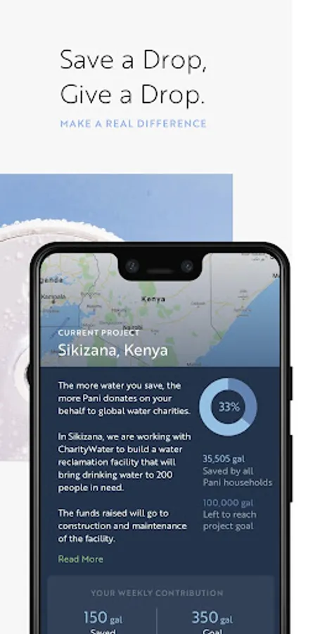 As you conserve water while using the Pani smart water monitor, Pani will make donations on your behalf to global water charities to provide clean water access to those in need. You can keep track of these water well projects directly in the app! So count your drops because every drop counts!