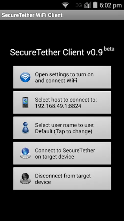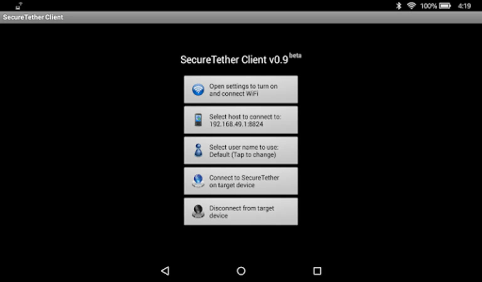 This app works together with SecureTether WiFi to share your phone's data connection with other Android devices via WiFi.