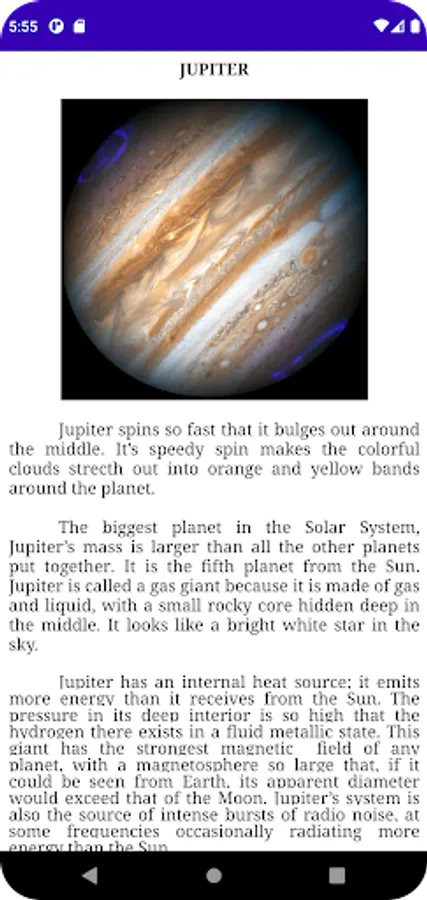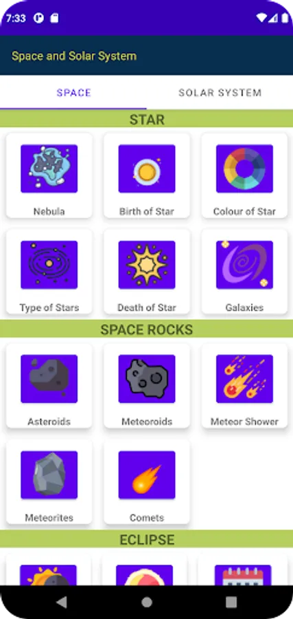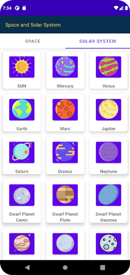 know characteristic of solar system member, including Sun, Mercury, Venus, Mars, Jupiter, Saturn, Uranus, Neptune, Earth Satellite (Moon), dwarf planet : Ceres, Pluto, Haumea, Makemake and Eris, know the rotation planet of solar system member. Know about Stars, Nebula, Birth of stars, Death of stars, Type of Stars, Colour of stars and Galaxies. Know about Asteroids, Meteoroids, Meteor Shower, Meteorites and Comets. Know about Rainbows, Halos, Sundogs, Northern and Southern Lights(Aurora Borealis, Aurora Australis). Know about space exploration : history of space exploration, space suit, space shuttle, space telescope, space station, space probe voyager. Video about comets. Know about Solar Eclipse dan Lunar Eclipse. 3D Model of Solar system member, Galaxy, Space shuttle, Astronout, Voyager, ISS. Photos of Space rocks, Galaxies, Nebulae, Eclipse, Stars and more. Quiz about Space and Solar System
