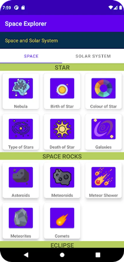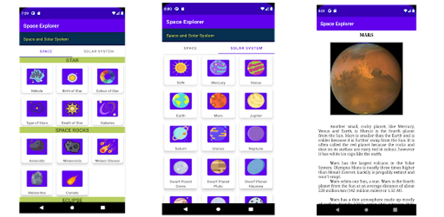 know the characteristics of the planets that make up the solar system, such as the Sun, Mercury, Venus, Mars, Jupiter, Saturn, Uranus, Neptune, Earth's satellite, Ceres, Pluto, Haumea, Makemake, and Eris, as well as the dwarf planets Ceres, Pluto, and Eris. Learn about stars, nebulas, star births, star deaths, star types, star colors, and galaxies. Know about comets, meteor showers, meteoroids, and asteroids. Learn about comets, rainbows, halos, sundogs, and the Northern and Southern Lights (Aurora Borealis, Aurora Australis). familiarize yourself with solar and lunar eclipses. Images of stars, galaxies, nebulae, eclipses, space rocks, and more. no display ad.